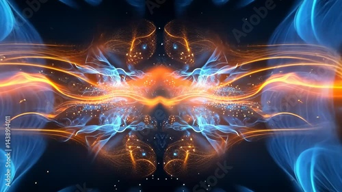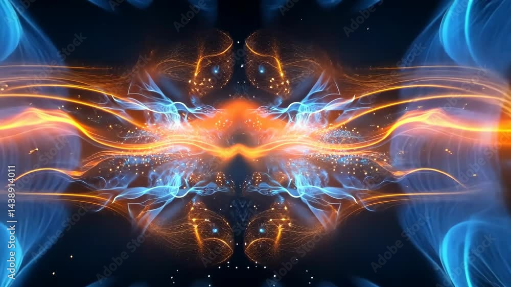 Wall mural dynamic energy waves: vibrant blue and orange abstract motion patterns in symmetrical flow