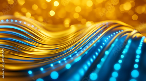 Wall mural : Dynamic flow of golden and blue light waves creating a vibrant abstract background with a modern aes
