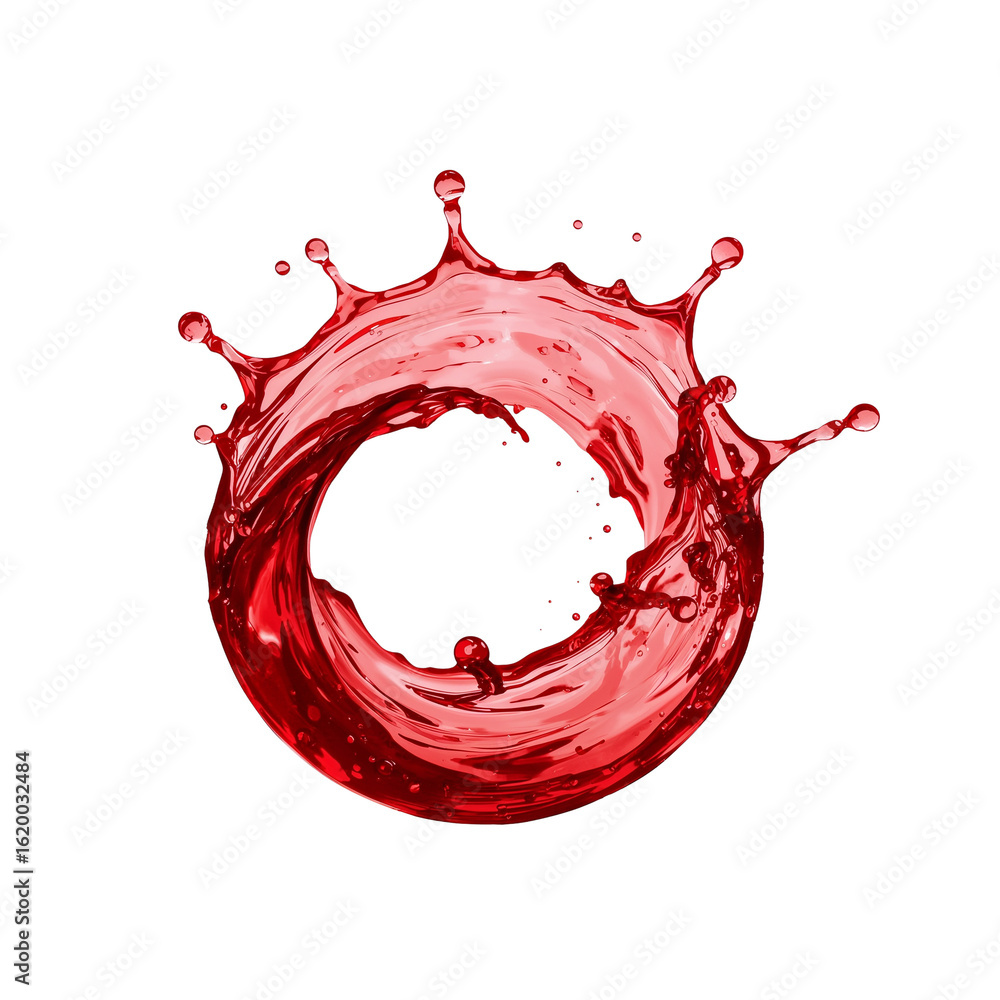 The watermark will not be included on Wall mural.: Dynamic fluid eruption visualization featuring vibrant crimson liquid creating a circular splash