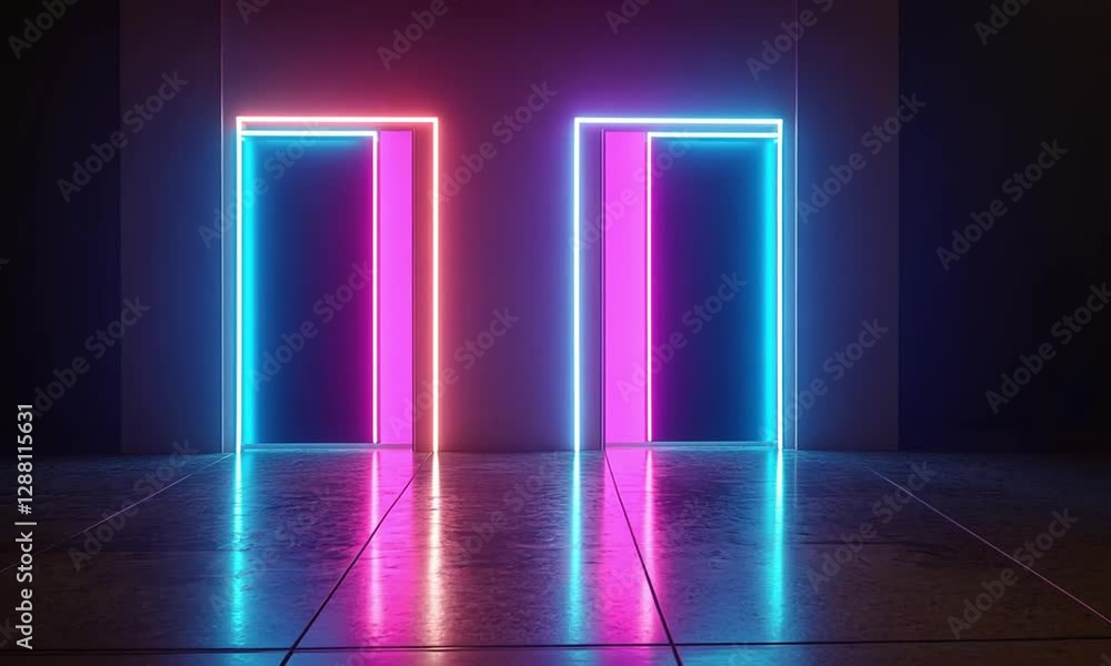 The watermark will not be included on Wall mural.: Dynamic grid 3d neon background with luminous light beams in synchronized motion