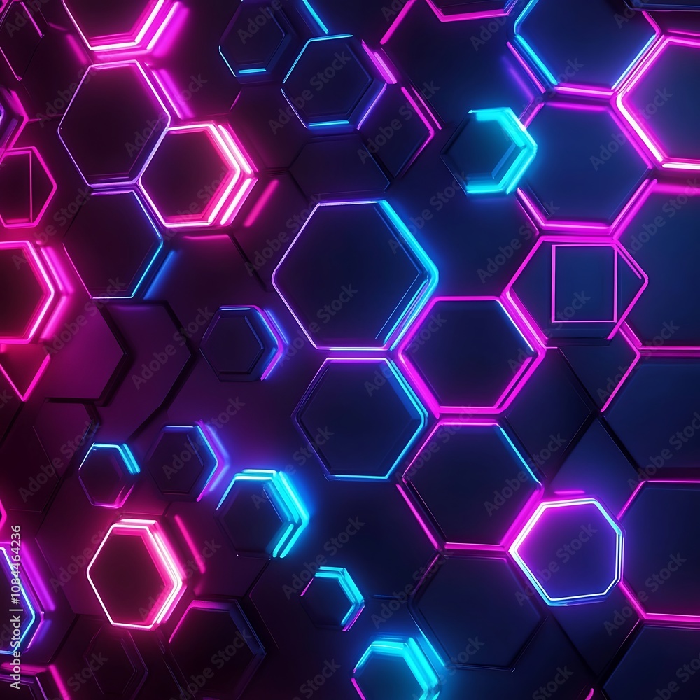 The watermark will not be included on Wall mural.: Dynamic hexagon neon lights symbolizing advanced futuristic design concepts -