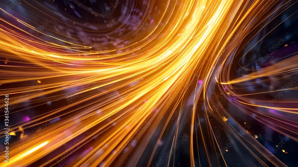 Wall mural dynamic light orange particle streams on dark blue abstract background
