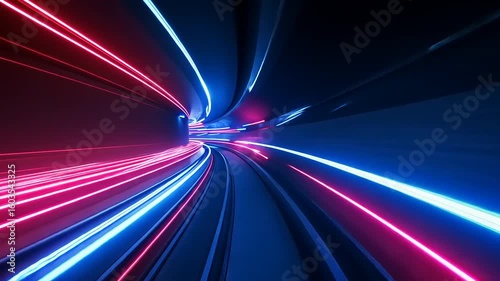 The watermark will not be included on Wall mural.: Dynamic light trails in a futuristic tunnel, creating a sense of speed and motion