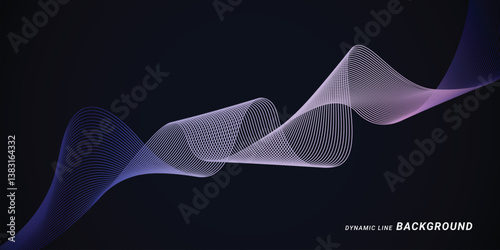 Dynamic line wave background colorful vector design illustration in blue, pink and dark backgroundWall mural