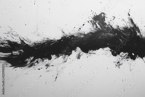 Wall mural : Dynamic monochromatic ink splash composition bold gestural strokes creating organic forms against pr