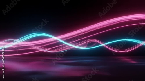 The watermark will not be included on Wall mural.: Dynamic neon wave animation abstract reflection glowing lines fluid movement magenta cyan -