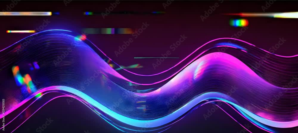 The watermark will not be included on Wall mural.: Dynamic neon waveforms pulsating with vibrant light and colorful glitches