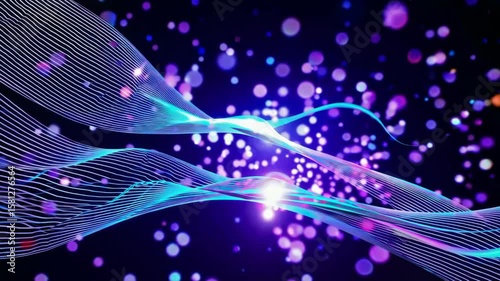 Wall mural dynamic neon waves and sparkling light particles in motion