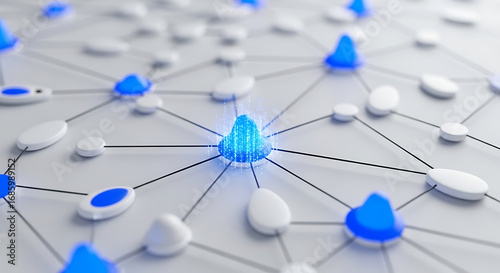 Wall mural dynamic network connection glowing with digital data streams connecting abstract nodes - Wall murals Wall mural dynamic network connection glowing with digital data streams connecting abstract nodes - Wall murals