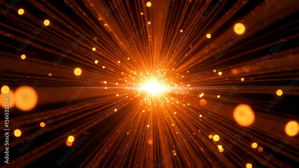 Wall mural : Dynamic orange abstraction glowing particles on beams of light in a futuristic background