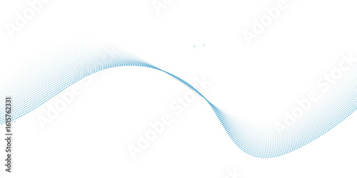 Wall mural dynamic particle waves in a blue halftone a flowing dot curve against a white backdrop, embodying te