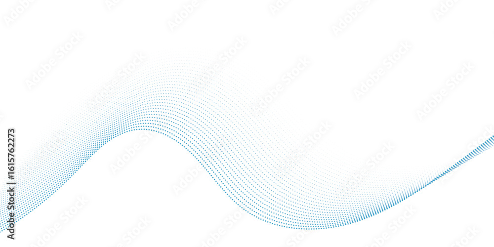 The watermark will not be included on Wall mural.: Dynamic particle waves in a blue halftone a flowing dot curve against a white backdrop, embodying te