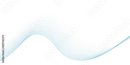 Wall mural dynamic particle waves in a blue halftone a flowing dot curve against a white backdrop, embodying te