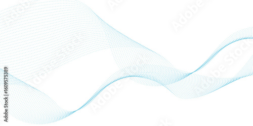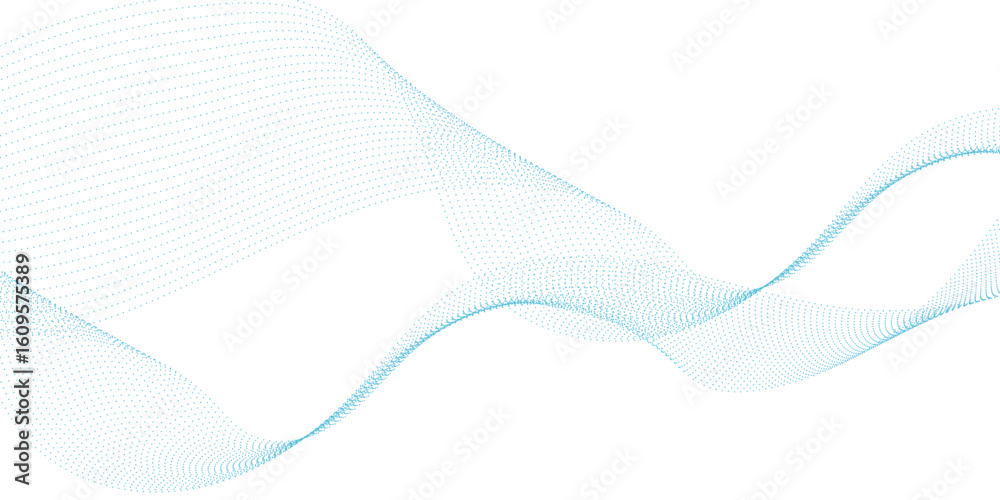 Wall mural dynamic particle waves in a blue halftone a flowing dot in transparent background