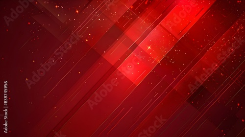 Wall mural : Dynamic red abstract background with geometric shapes, sparkles, and gradients
