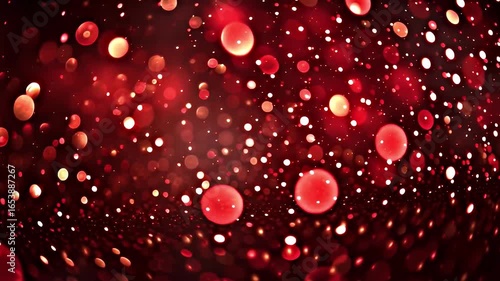 Wall mural dynamic red bokeh lights: abstract glittering particle background with festive sparkle
