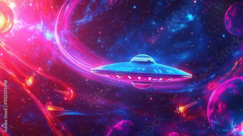 Wall mural dynamic saucer with glowing lasers and swirling cosmic light effects