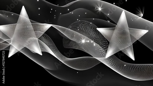 The watermark will not be included on Wall mural.: Dynamic silver stars gliding through a flowing mist of light in a dark atmosphere
