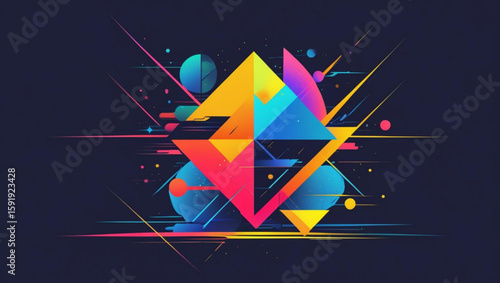 The watermark will not be included on Wall mural.: Dynamic synthwave abstract geometric background