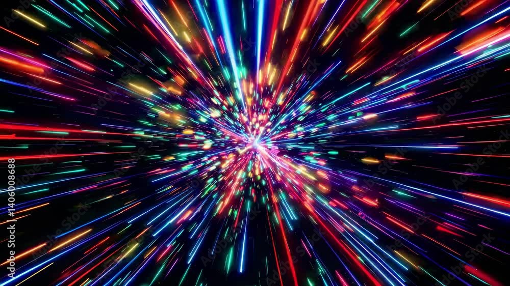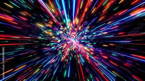Wall mural dynamic video concept of colorful light streaks creating a tunnel effect. the camera angle is center