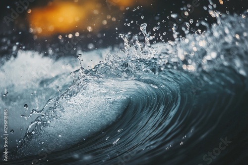 The watermark will not be included on Wall mural.: Dynamic wave in ocean water splashing close-up with bubbles