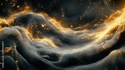The watermark will not be included on Wall mural.: Dynamic wave patterns with glowing particles in a dark atmosphere