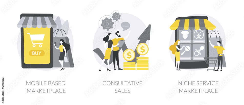 The watermark will not be included on Wall mural.: E-commerce application abstract concept vector illustrations -