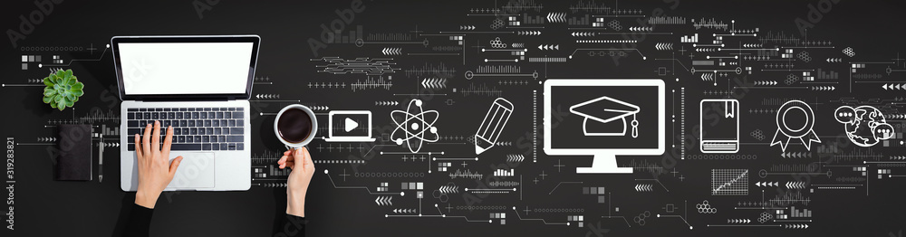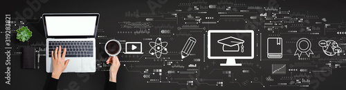 The watermark will not be included on Wall mural.: E-learning concept with person using a laptop computer