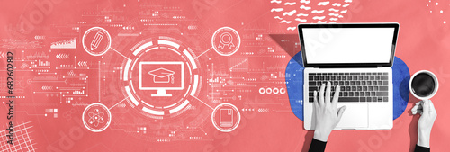 The watermark will not be included on Wall mural.: E-learning concept with person using a laptop computer