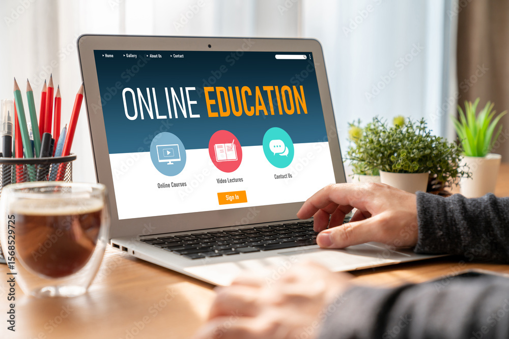 The watermark will not be included on Wall mural.: E-learning website with modish sofware for student to study online on the internet network
