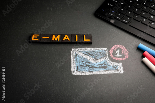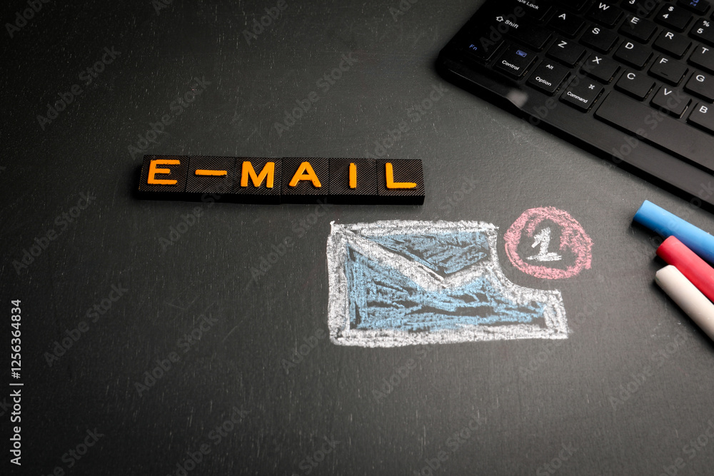 The watermark will not be included on Wall mural.: E-mail - text from old alphabet letters - computer keyboard on the table