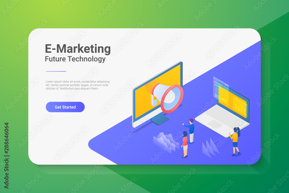 Wall mural e-marketing internet web technology isometric flat vector illustration. computer and laptop notebook - Wall murals Wall mural e-marketing internet web technology isometric flat vector illustration. computer and laptop notebook - Wall murals