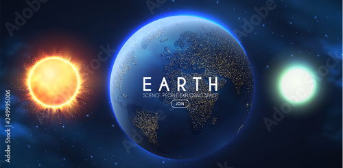 Wall mural : Earth, moon and sun in univerce - realistic planets and space background -