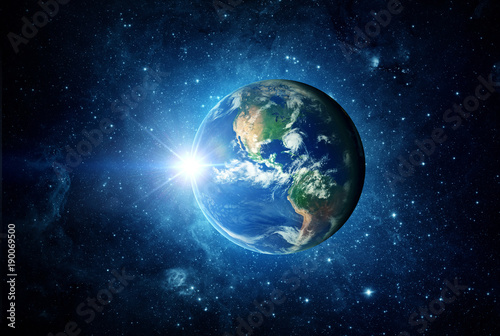 Wall mural : Earth, sun and galaxy - elements of this image furnished by nasa