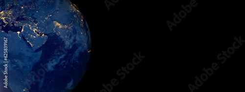 Wall mural earth at night from space on black background banner. elements of this image furnished by nasa.