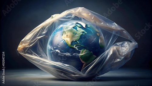 Wall mural : Earth encased in plastic: a fragile planet generative ai