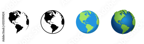Wall mural earth globe in different designs. world map in circle. earth globes collection. world map in modern