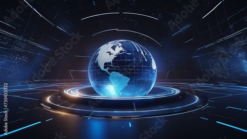 The watermark will not be included on Wall mural.: Earth globe in space a futuristic technology concept with abstract shapes and patterns - the image ha