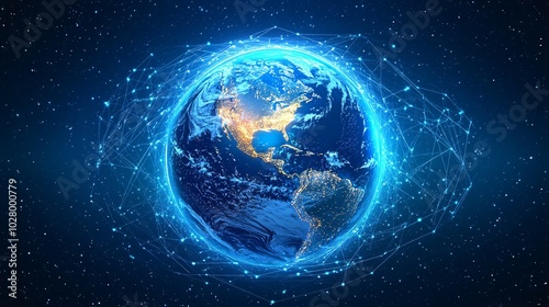 Wall mural : Earth globe surrounded by a digital network of lines and nodes