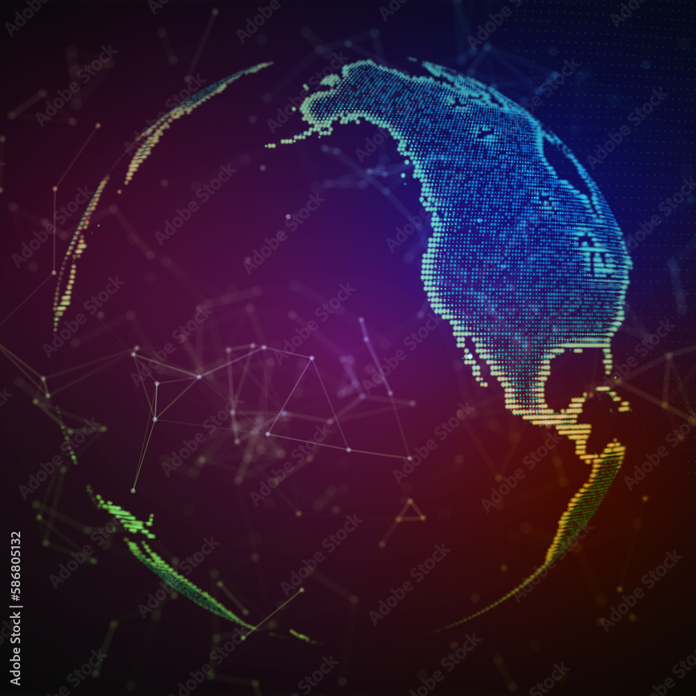 The watermark will not be included on Wall mural.: Earth globe with light effect - global world network and telecommunication on earth -