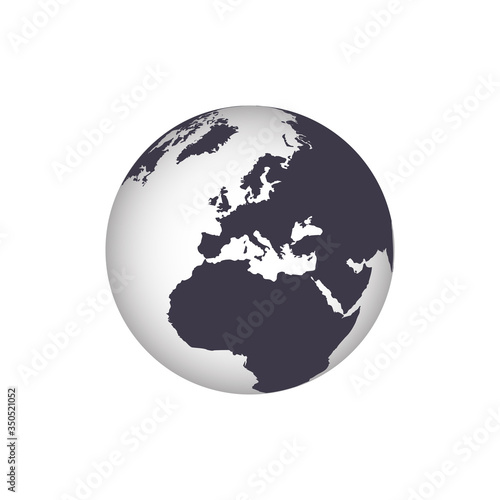 Wall mural : Earth icon - vector globe with a gradient world map isolate on white background -
