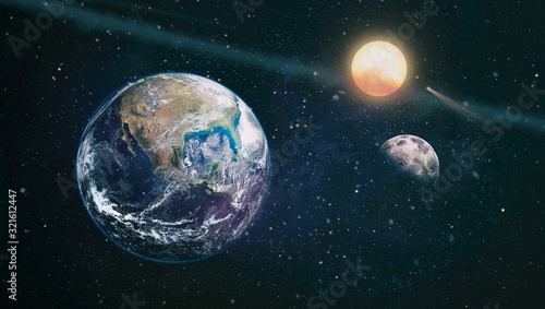 Wall mural : Earth planet in galaxy use for science design - earth and galaxies in space - science fiction art - el