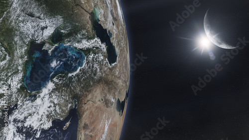 Wall mural earth planet in outer space with moon and sunlight. elements of this image furnished by nasa. - Wall murals Wall mural earth planet in outer space with moon and sunlight. elements of this image furnished by nasa. - Wall murals