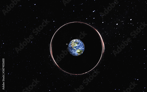 Wall mural : Earth planet of solar system in black hole somewhere in space - view through the wormhole - dramatic s