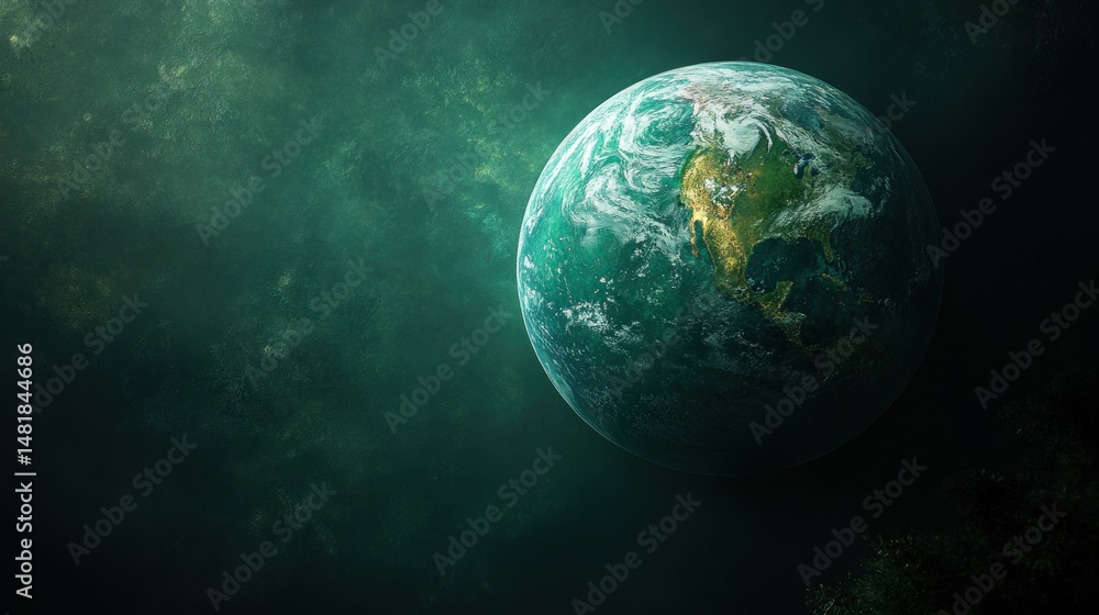 The watermark will not be included on Wall mural.: Earth seen from deep space in a green nebula -