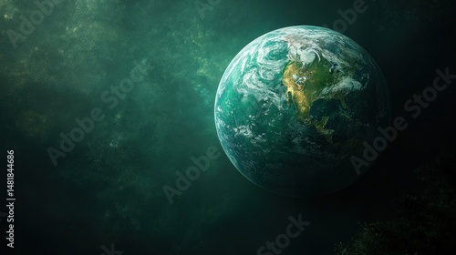 Wall mural earth seen from deep space in a green nebula. - Wall murals Wall mural earth seen from deep space in a green nebula. - Wall murals