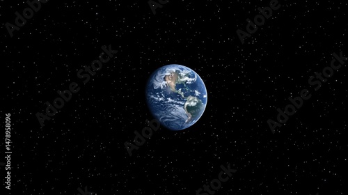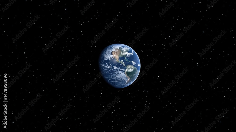 The watermark will not be included on Wall mural.: Earth view from outer space with starry background digital art illustration planet orbiting