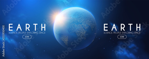 Wall mural : Eath planet in space with lights - realistic universe - cosmos background -