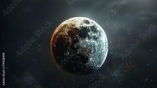 The watermark will not be included on Wall mural.: Eclipse: a 3d illustration of a partial lunar eclipse, showing a portion of the moon passing into th