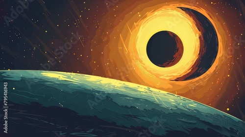 Wall mural : Eclipse: a vector illustration of a solar eclipse, showing the moon passing between the sun and the